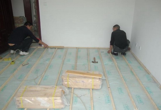 这种方法就是在在铺设地板之前先在龙骨上加一层约12mm~22mm多层优质胶合板或针叶材