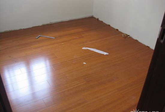 7、清场:将地板表面和拼缝处"多余的胶痕和污物"清理干净。