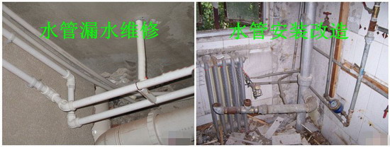 本中心维修:家庭、单位、公司出现的水管断裂、水管渗水、水管漏水、暗管漏水、卫生 间水管漏水、厨房水管漏水、明装水管漏水、PPR水管漏水、PVC水管漏水、铝塑水管漏、软管漏水、阀门漏水等现象,并且更换水表、更换阀门、更换溷 水阀、安装维修上、下水管、改造各种水管。在长期的工作实践当中积累的丰富的经验,为市民排忧解难。