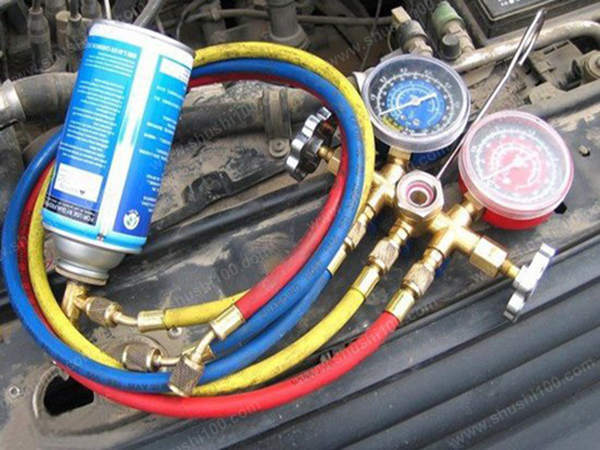 第二步:将空调设定制冷模式,并启动运转。倒置氟制冷剂钢瓶,开启瓶阀,让制冷剂由低压阀处吸入空调系统,控制加液表伐,加液不要太急,(夏季低压压力不要超过0.4-0.5MPa)完成加氟操作。