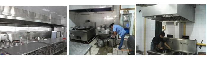 本公司清洗厨房场合如下,星级酒店,大型酒店,宾馆 ,食堂,中西餐厅,快餐店,学校,大厦,办公楼,商场,公寓,单位,工厂,机关单位,娱乐场所等:厨房清洗类 酒店油烟管道清洗、大型油烟机清洗,油烟净化器清洗,大型油烟管道清洗,油烟机清洗,风机清洗,厨房清洗,酒店清洗,烟罩表面、烟罩内的灯罩、运水系统、防火网、排烟口、以及灶台表面、酒店后厨烟道改造。大型酒店设备清洗 厨房设备维修类,炮台灶维修,风机维修,炉灶维修,鼓风灶维修,大锅灶维修,油烟净化器维修。