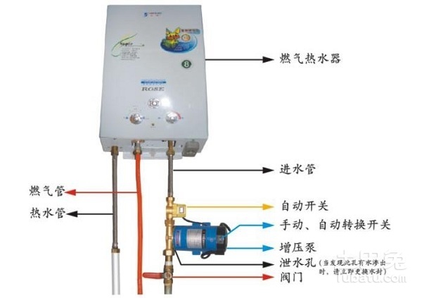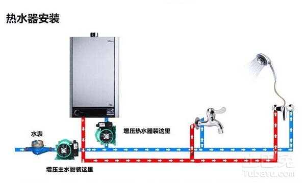 2、安装家用增压泵时需要注意按照垂直或水平的方式进行安装,水流的方向需要与泵体上显示箭头的方向保持一致,尽量安装在距离水位近的位置(例如图中的位置),如果各位不会安装的话按照小兔上面给出的图示进行安装即可。